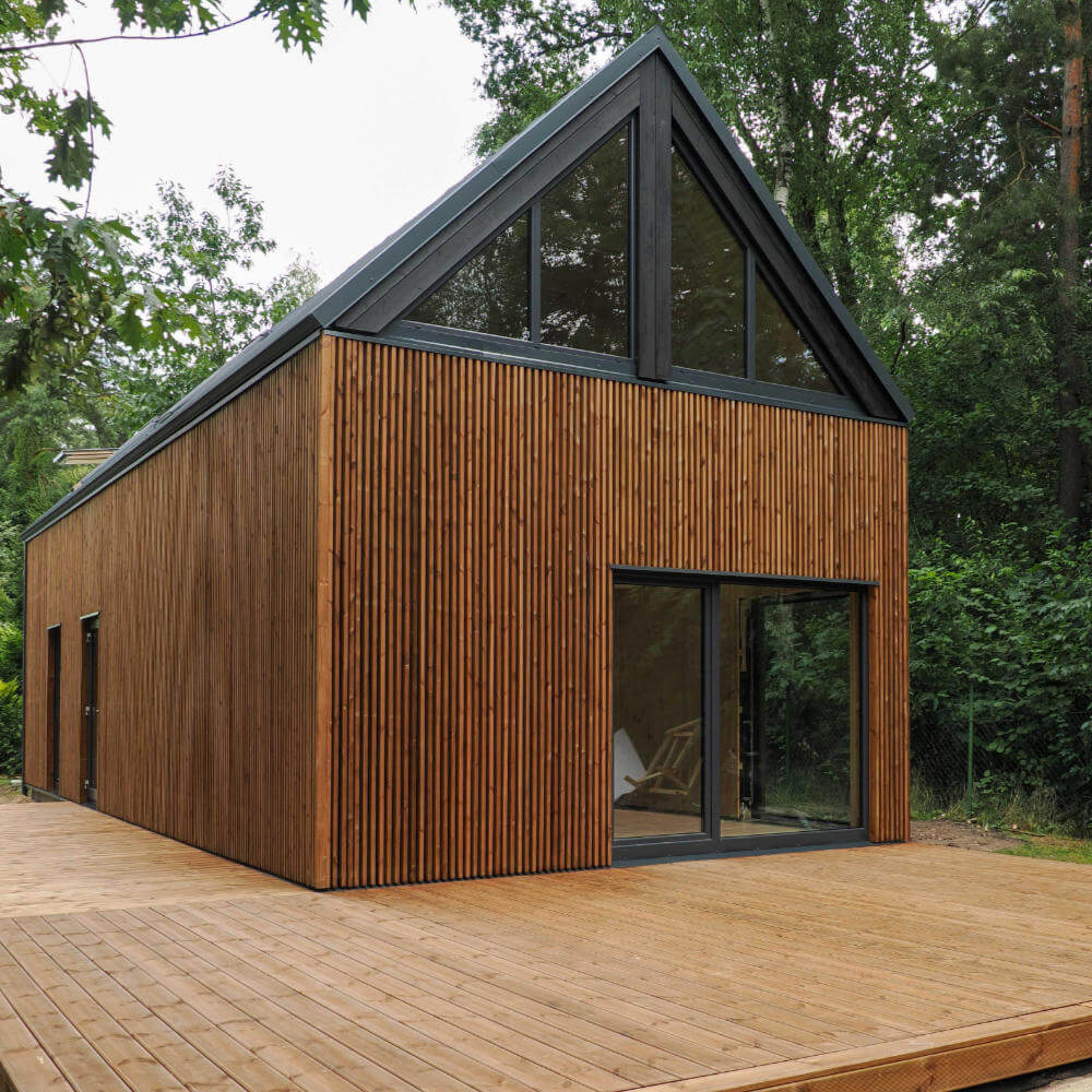 Nasza firma specjalizuje się w produkcji drewnianych nowoczesnych domów modułowych w systemie szkieletowym. Posiadamy wieloletnie doświadczenie w branży drzewnej. Kładziemy duży nacisk na jakość konstrukcji, używając najwyższej klasy materiałów, w tym certyfikowanego drewna C24.