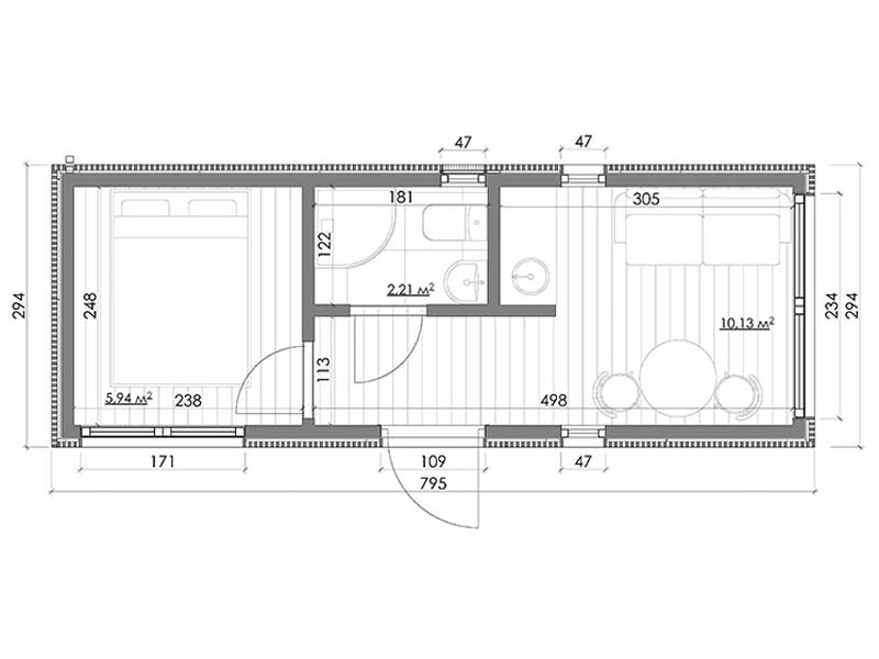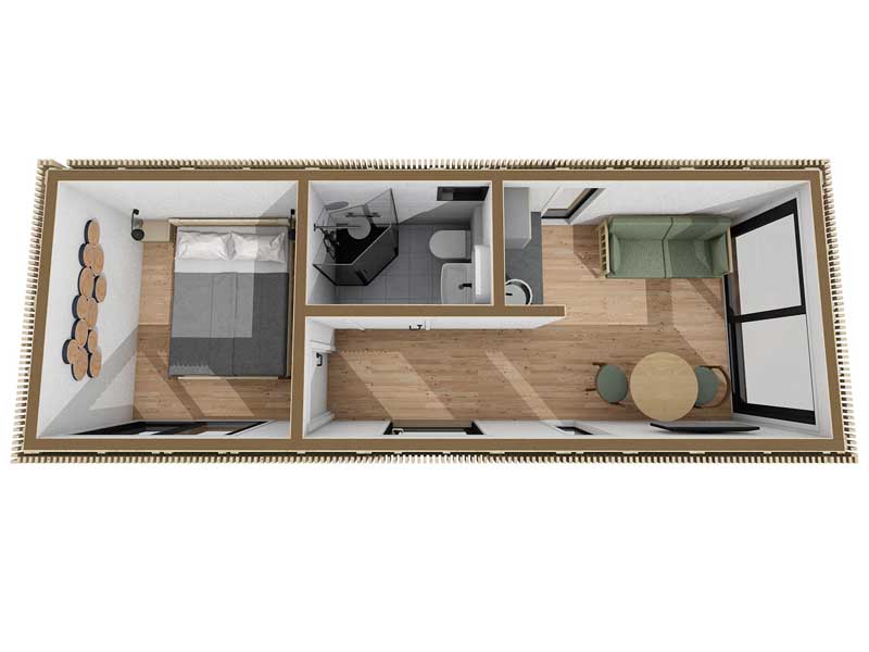 Zaletą domów CUBE są: szybki czas realizacji, niskie koszty budowy oraz możliwość dostosowania do indywidualnych potrzeb Klienta. Projekt nie wymaga pozwolenia na budowę i może pełnić rolę domku całorocznego. Dom modułowy CUBE24 o powierzchni użytkowej 17,81 m2 to doskonały wybór dla osób szukających niewielkiego domu, który z łatwością można zmieścić nawet na niewielkiej działce. Montaż całej konstrukcji zajmuje do dwóch dni.
