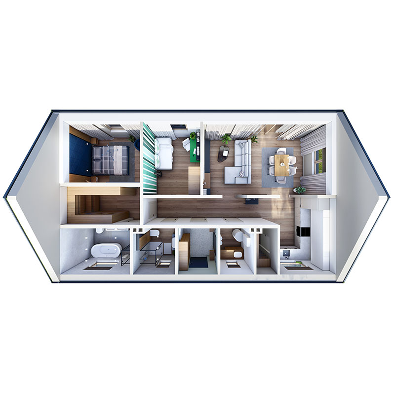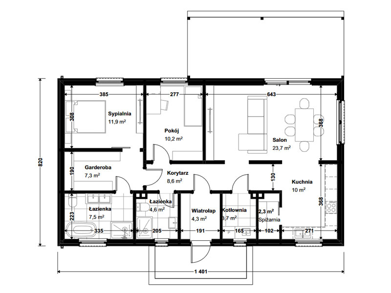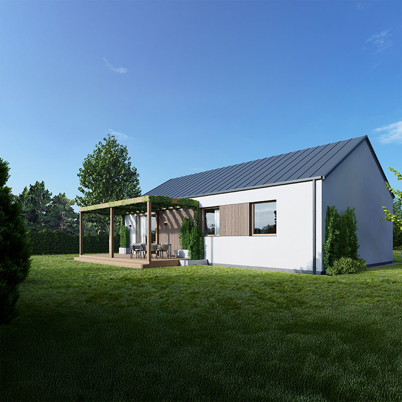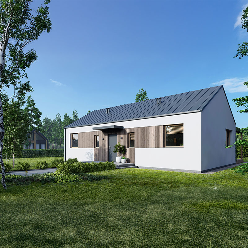 Parterowy dom DH115 został zaprojektowany z myślą o trwałości i energooszczędności . Konstrukcja z drewna klasy C24, szkieletowe ściany z zaawansowaną izolacją oraz ekologiczne materiały wykończeniowe zapewniają niskie koszty utrzymania i komfort cieplny przez cały rok. To nie tylko dom, ale również inwestycja w zrównoważony rozwój i lepszą przyszłość dla Twojej rodziny.