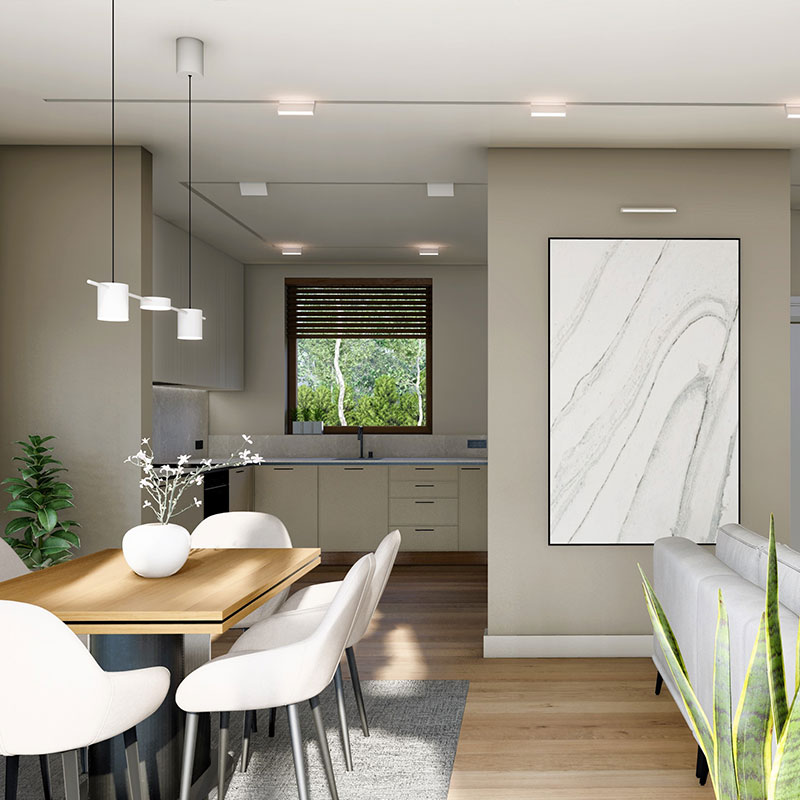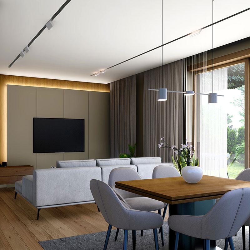 Dom został zaprojektowany z dbałością o każdy detal. Salon o powierzchni 23,66 m² to serce domu, idealne na rodzinne spotkania, natomiast kuchnia z spiżarnią oraz dwie łazienki zwiększają funkcjonalność przestrzeni. Garderoba (7,32 m²) oraz kotłownia (3,68 m²) dopełniają całości, tworząc praktyczne i wygodne miejsce do życia. DH115 to wybór dla tych, którzy oczekują więcej od swojego domu – stylu, jakości i komfortu w jednym.