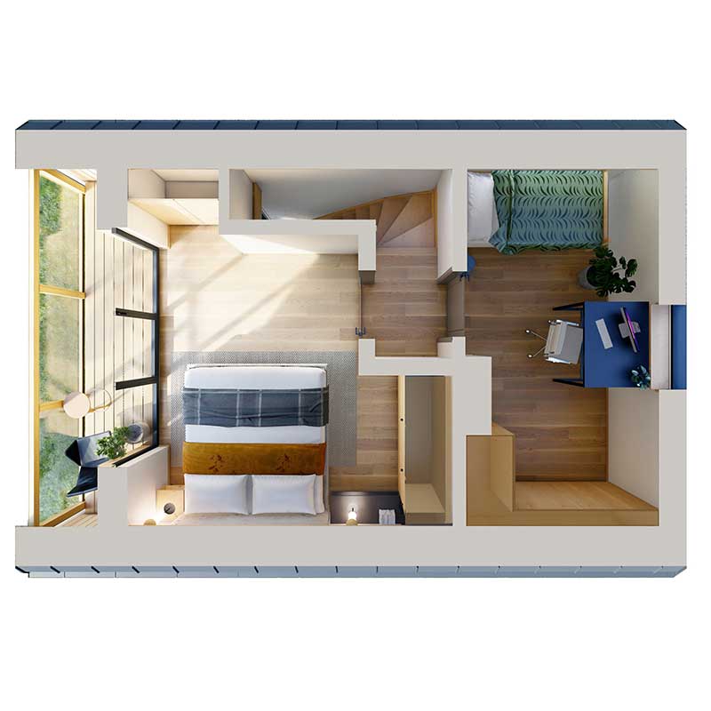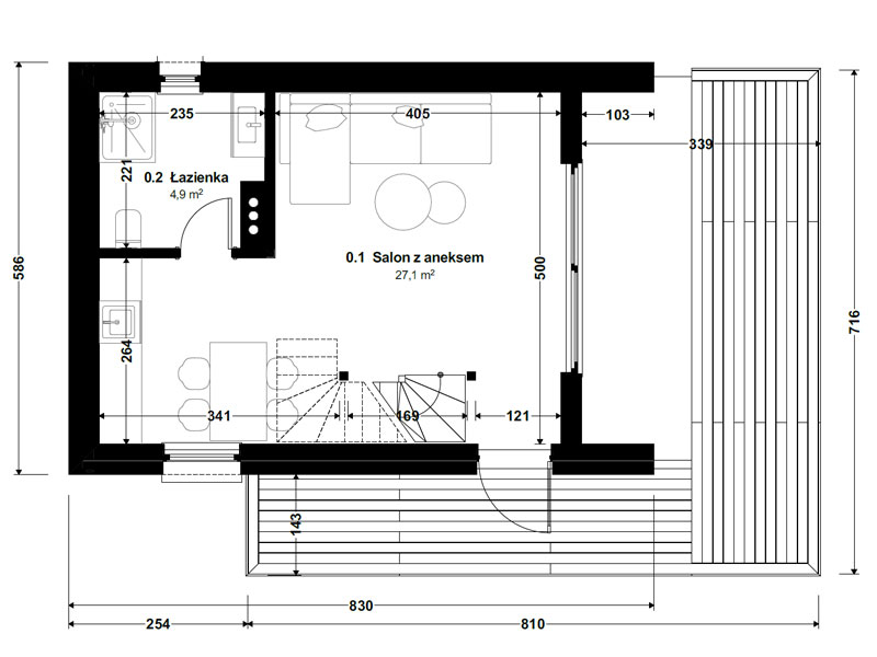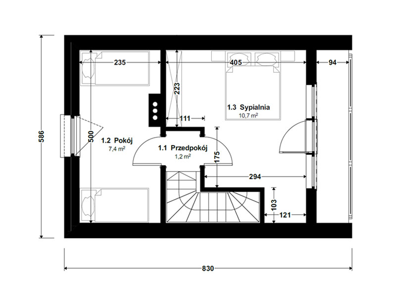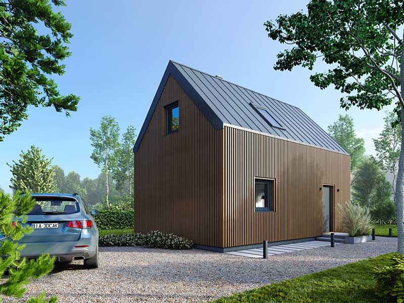 Możliwość dowolnej aranżacji dodatkowego pokoju pozwala dostosować wnętrze do zmieniających się wymagań rodziny. Projekt sprawdzi się zarówno jako dom całoroczny, jak i letniskowy – jego uniwersalny charakter i kompaktowe wymiary czynią go odpowiednim rozwiązaniem nawet na niewielkich działkach.